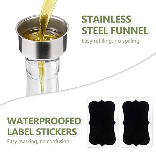17oz Olive Oil Dispenser Bottle, 500ml Oil & Vinegar Cruet with 2 Stainless Steel Pourers, 2 Labels,1 Brush and 1 Funnel for Kitchen