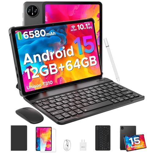 DOOGEE Tab A9 Android Tablet,10 inch Tablet,12GB+64GB/2TB TF,6580mAh Gaming Tablets,2.0GHz Quad Core,1280×800 IPS HD,Dual Speakers,5G WiFi,BT5.0,Face Unlock,Android 15 Tablet with Keyboard,Pen&Mouse