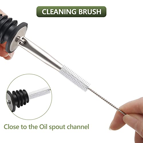 - 【Multifunctional Stainless Steel Spout】The olive oil bottle has 18/8 Stainless steel pour spouts and perfectly keep dust out. Everyone can pour and dispense oil with a nice stream without leakage. Dishwasher-safe and interchangeable