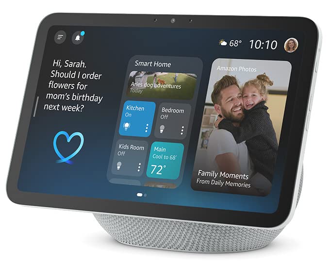 - See your photos on display – When not in use, set the background to a rotating slideshow of your favorite photos. Invite family and friends to share photos to your Echo Show. Prime members also get unlimited cloud photo storage.
