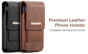 Phone Holster with Belt Clip for iPhone 17/16/15/14/13/12 Pro Max & Plus, Galaxy S25/S24/S23/S22 Ultra & Plus, Premium Leather Pouch with Card Holder, Magnetic Closure, Rugged Outdoor Case – L Brown
