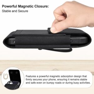 ykooe Holster Compatible with iPhone Pro Max (16 15 14 13 12 11) Galaxy Plus/FE (S25 S24 S23 S22 S21), Nylon Cell Phone Belt Holder Case with Clip and Leather Card Pouch for Men, Black -L