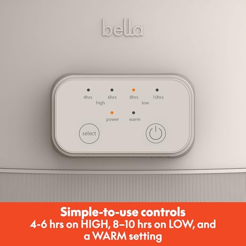 bella 6.0 Qt Programmable Slow Cooker, Ceramic Nonstick Coating, Adjustable Temperature & Cooking Times, Dishwasher Safe Stoneware Pot & Tempered Glass Lid, Tangle Free Cord Wrap, Oatmilk