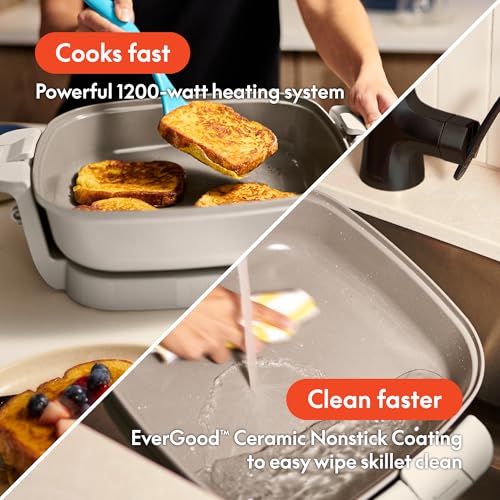 bella Make & Take Electric Skillet, Fits-anywhere™ kitchenware, EverGood™ Ceramic Coating, Adjustable Temperature & Dishwasher-Safe Tempered Glass Lid, Cast Aluminum Base, 1200 Watt, Oatmilk