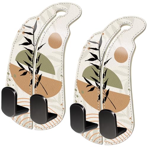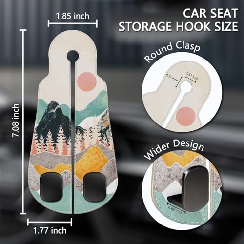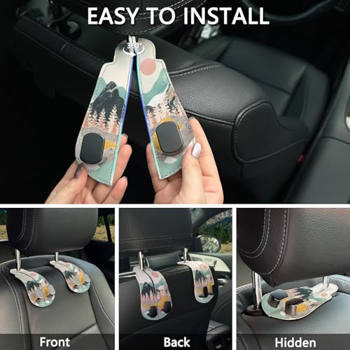 Blusabaca 2PCS Car Seat Back Storage Headrest Hooks, Sunrise Purse Holder Bags Hanger, PU Leather Double Metal Hook for Backseat Organizer, Women Car Accessories Organization