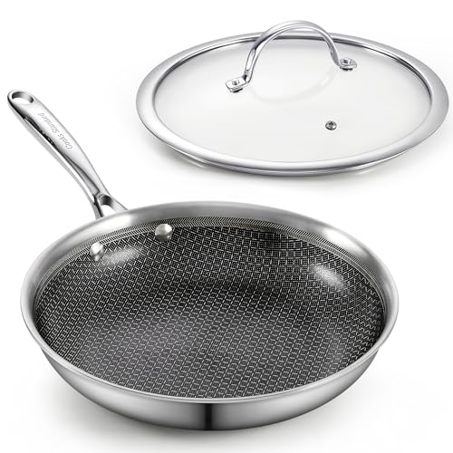 Cooks Standard Hybrid Nonstick Frying Pan, 12-Inch Skillet, Multi-Ply Clad Stainless Steel Fry Pan with Tempered Glass Lids, Oven Safe, Compatible with All Stovetops