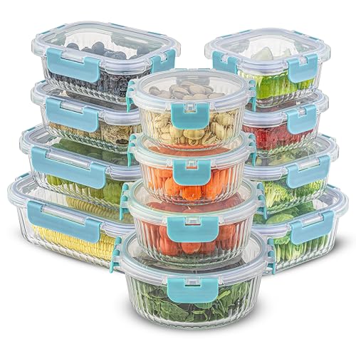 JoyJolt 24pc Borosilicate Glass Storage Containers with Lids | 12 Airtight/Freezer Safe Food Storage Containers for Pantry and Kitchen | Meal Prep Container for Lunch | Glass Tupperware Set