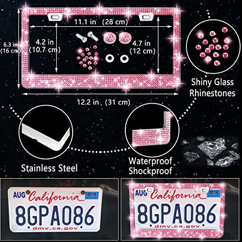 NBTEPEM 27-Piece Bling Car Accessories Set – Universal Fit Steering Wheel Covers, License Plate Frames, Phone Holder, Car Fast Charger, Coasters (Pink)