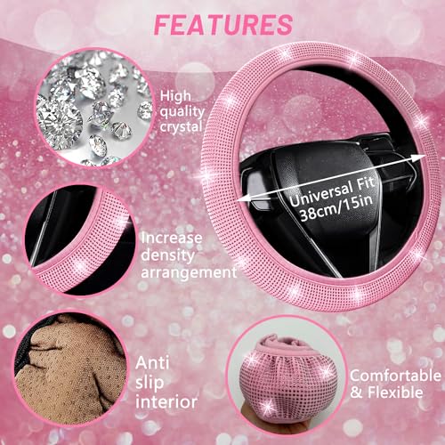 3 reviews for NBTEPEM 27-Piece Bling Car Accessories Set – Universal Fit Steering Wheel Covers, License Plate Frames, Phone Holder, Car Fast Charger, Coasters (Pink)