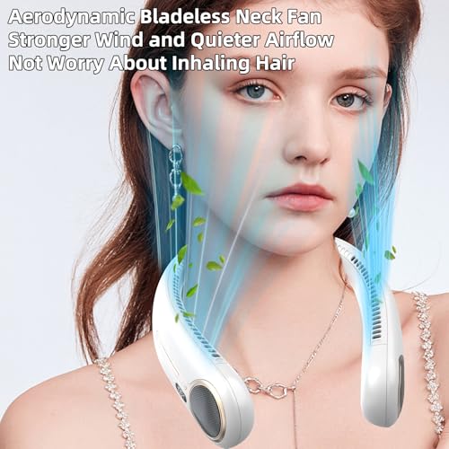 Portable Neck Fan,Hands Free Personal Wearable Bladeless Fan,6000mAh USB Rechargeable,360° Cooling,LED Display,4-Speeds,Birthday Gifts for Men Women Dad Mom,Valentines Day Gifts for Her Him (White)