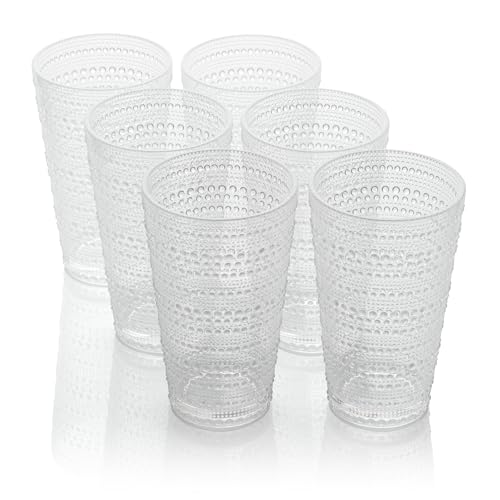 Santa Fe Clear Set of 6 Premium Acrylic Ice Tea Glass 22 oz – Unbreakable Drinkware with Textured Bubble Design, Shatterproof Tumblers for Indoor & Outdoor Use