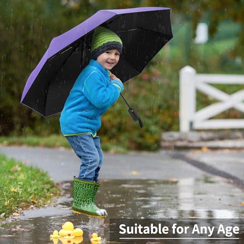 - 【Reliable UV Block and Rainproof】The premium coated purple umbrella offers UPF50+ protection that blocks up to 99% of UV rays, making it your perfect summer companion. When it rains, the high-density waterproof fabric of the automatic umbrella keeps you well-covered. Thanks to its quick drying, the mini umbrella for travel is easy to refold quickly.
