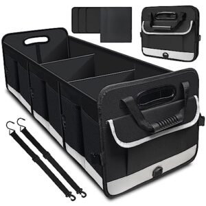 Trunk Organizer for Car, 95L Large Capacity Storage with Non-Slip Bottom Strips and 2 Retractable Straps, Cargo Organizer for Suv, Truck, Sedan, Waterproof Portable Car Organizers for Women Men