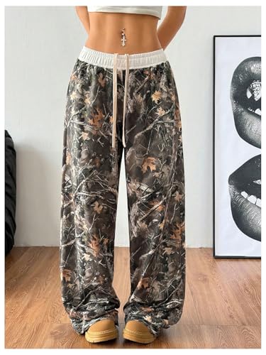 - Women’s drawstring waist wide leg loose fit camo pantssweatpants,elastic waist baggy sweatpants,camo pants women