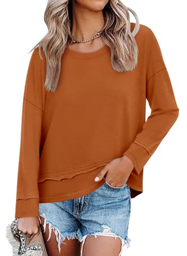 Women’s Long Sleeve T-Shirts Solid Color Loose Fit Cute Basic Flowy Tops Spring Fall Casual Blouse
