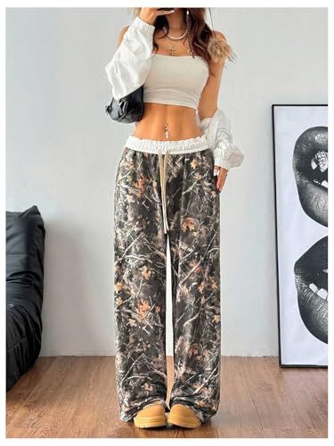 SOLY HUX Women’s Camo Pants Wide Leg Baggy Sweatpants Elastic Waist Drawstring Loose Pants Trendy Y2K Drawstring Trousers
